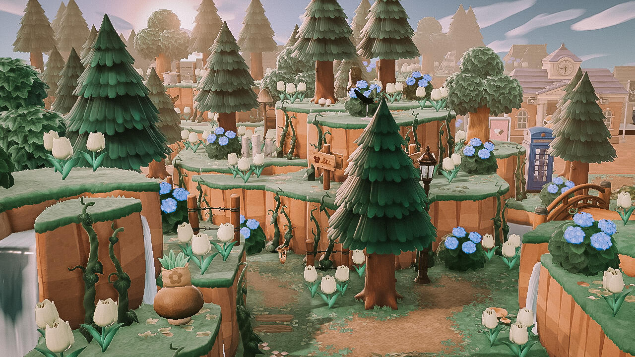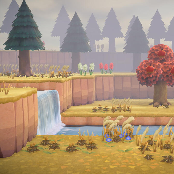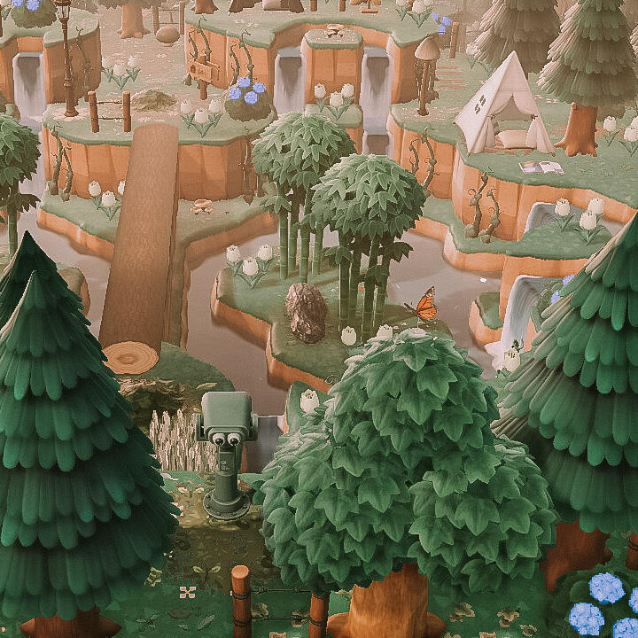 I grew up going to the Smokey Mountains every year with my family for a week. we would rent a cabin and spend our time finding waterfalls, driving along the Blue Ridge Parkway, and exploring all the small mountain towns we came across. so naturally, when I realized how much I loved terraforming in acnh, I knew I needed to pull from those memories and create a mountain town with forestcore vibes. I set it in summer so that the hydrangea would be in bloom, as they are one of my favorites.